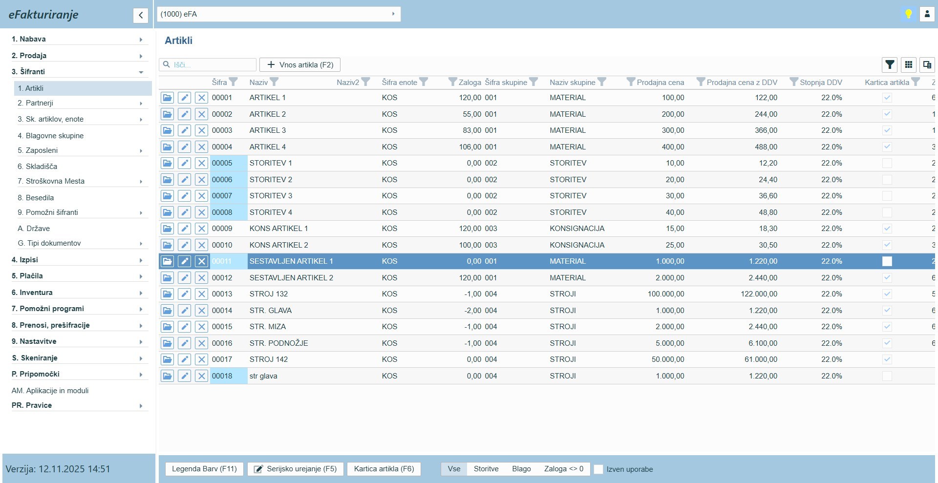 - Vodenje zaloge artiklov (potreben je modul eFA zaloge)