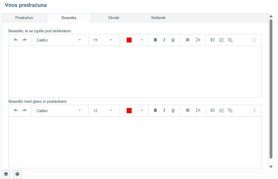 - Več besedil za izpis na predračunu ali računu: besedila se nahajajo v šifrantu besedil kjer jih lahko urejamo, izpišejo pa se pod postavkami in seštevkom dokumenta.