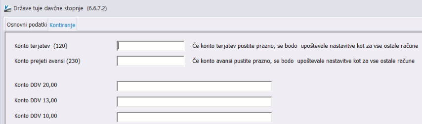 Po potrebi lahko državi določite tudi kontiranje, kjer nastavite: