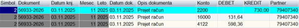 Za opravljeno storitev dobavitelja smo prejeli račun za 730,00 eur. Najprej naredimo klasične knjižbe za prejet račun, obvezno preko zavihka DDV, da se vzpostavi KPR.